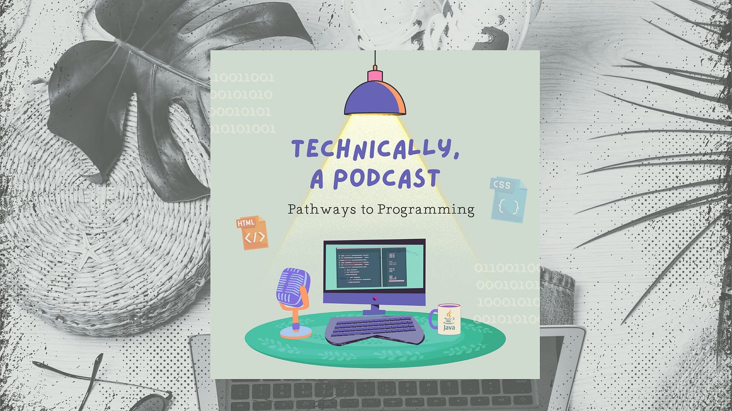 I started Technically, A Podcast: Pathways to Programming because I’ve seen a lot of people losing sight of what drew them to technology in the first place. It’s easy to get caught up in the stress, but at its core, this field is built on curiosity, creativity, and a million different ways to break in. You don’t necessarily need a computer science degree (or any degree) to get started.
